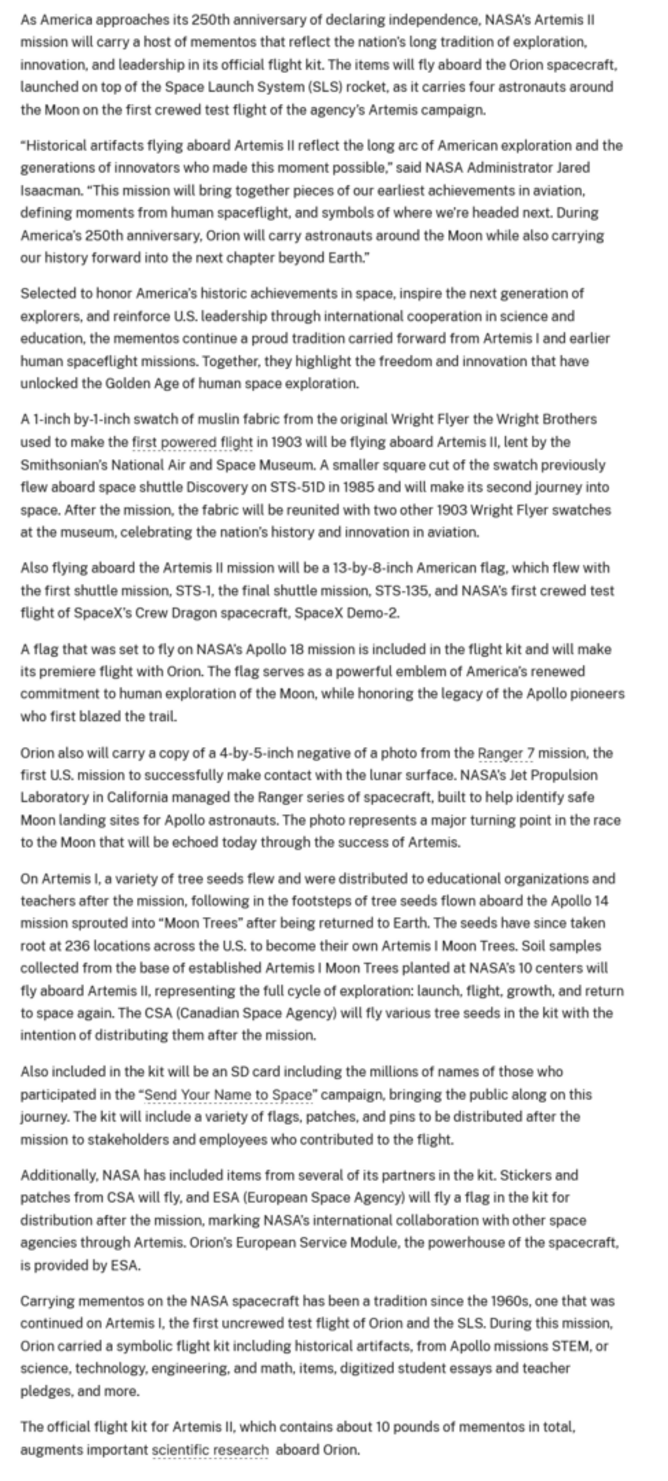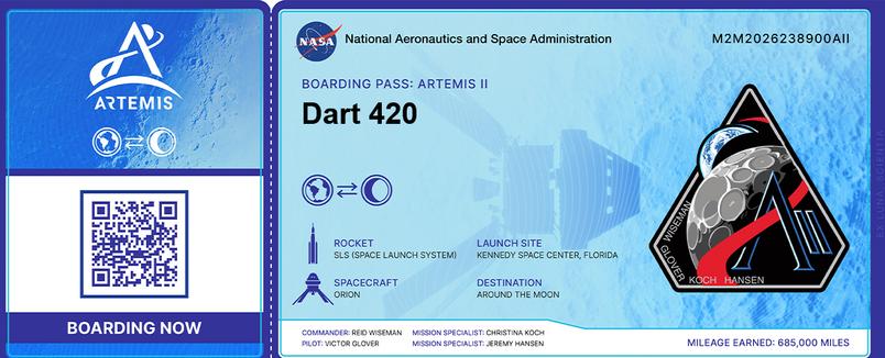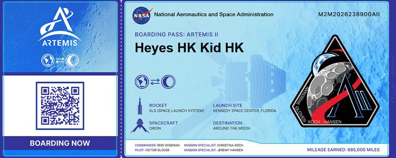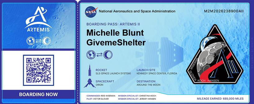 I Registered the Names & Numbers below and will be placed Aboard the Space Ship ARTEMIS II